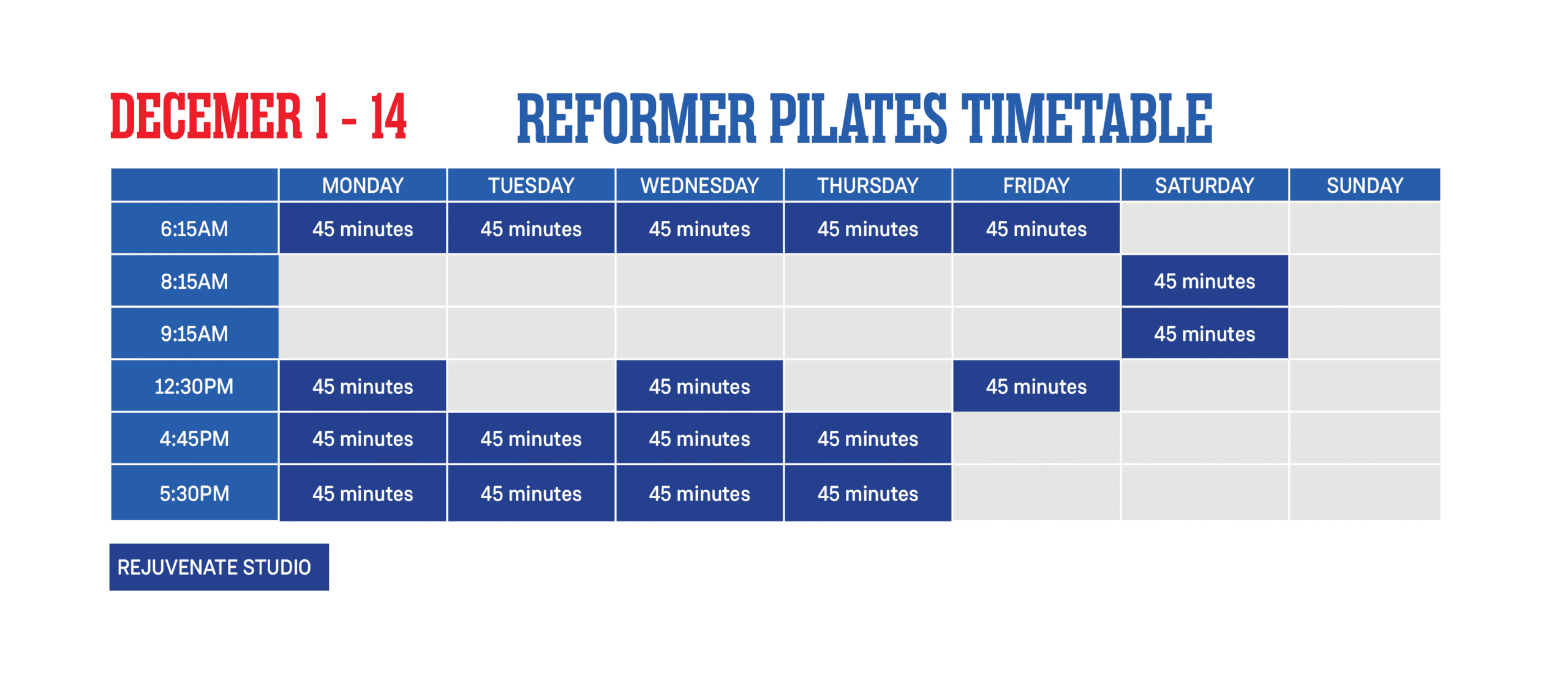 Reformer Pilates is now at UniActive! Join us in the Rejuvenate Studio, our dedicated Pilates space right next to the pool.
